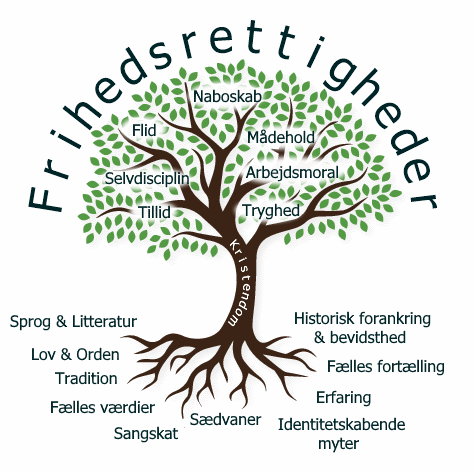 Friheden konstituerer ikke sig selv og må således ikke gøres blind for sit eget fundament, herunder folkelig sammenhængskraft og historisk forankring. Uden et fundament af folkebevidsthed, en fælles folkelig fortælling, identitetsskabende myter og fælles kulturelle institutioner, forvitrer forudsætningerne for borgerligheden – og dermed også demokratiet.